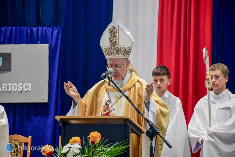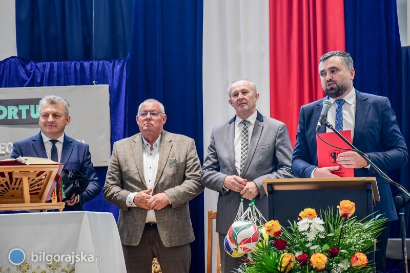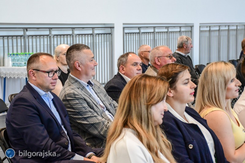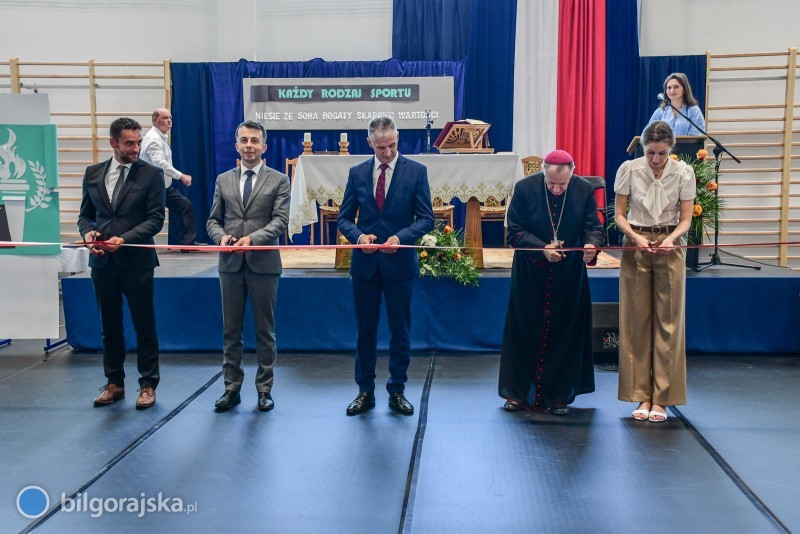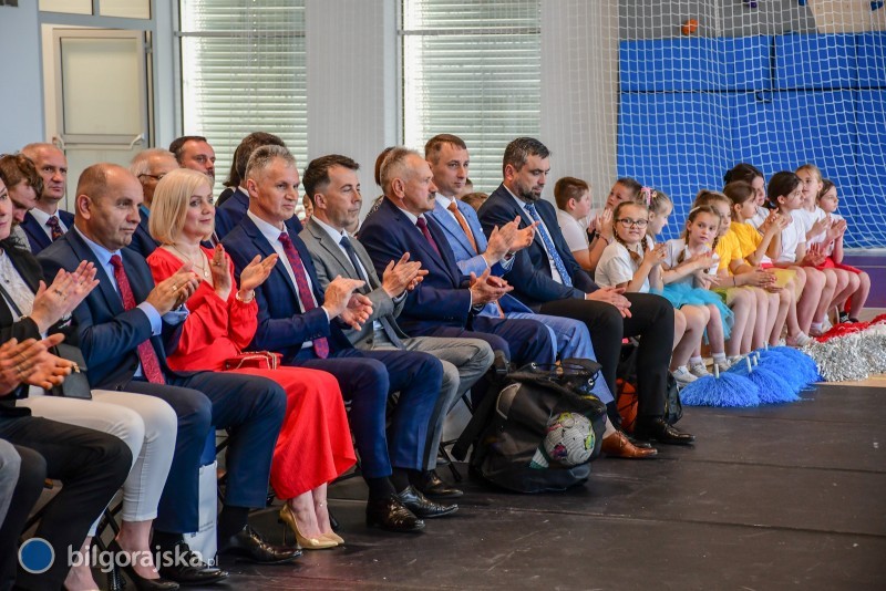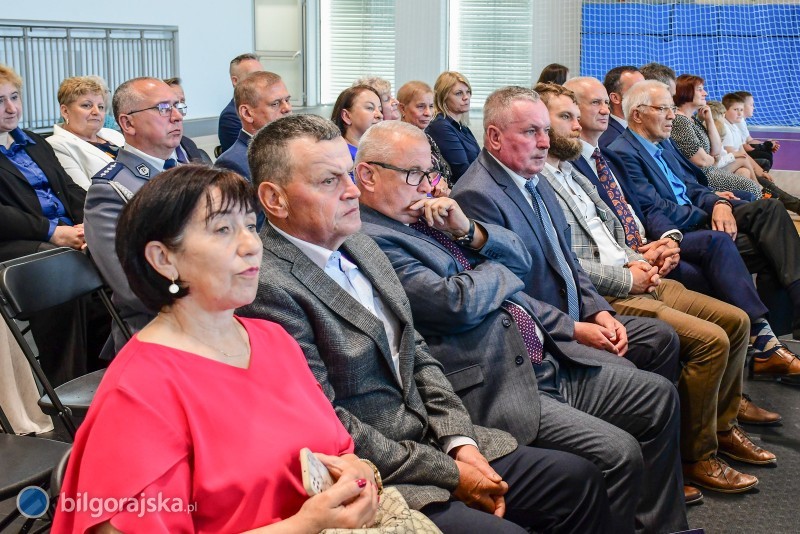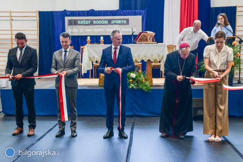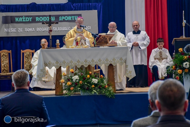 Środowa uroczystość rozpoczęła się od mszy świętej. Liturgii przewodniczył ksiądz biskup Marian Rojek, który po zakończeniu nabożeństwa dokonał poświęcenia budynku. Następnie głos zabrała dyrektor Gminnego Centrum Sportu i Rekreacji Angelika Grum, która przywitała wszystkich przybyłych gości. Wśród nich znaleźli się przedstawiciele władz samorządowych, radni, dyrekcja szkoły podstawowej, nauczyciele, uczniowie oraz mieszkańcy.