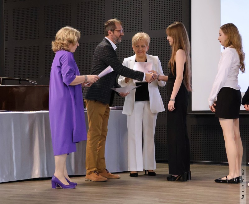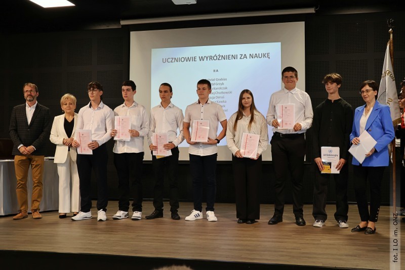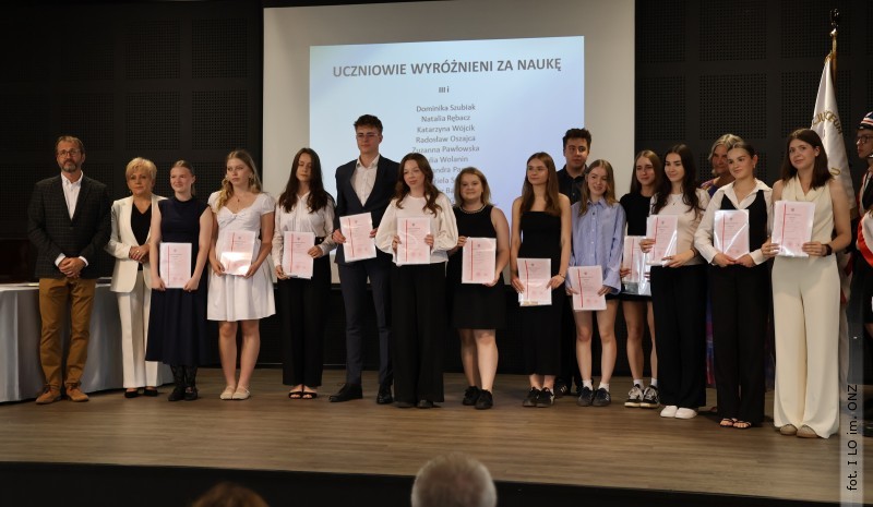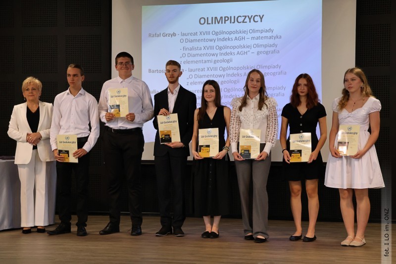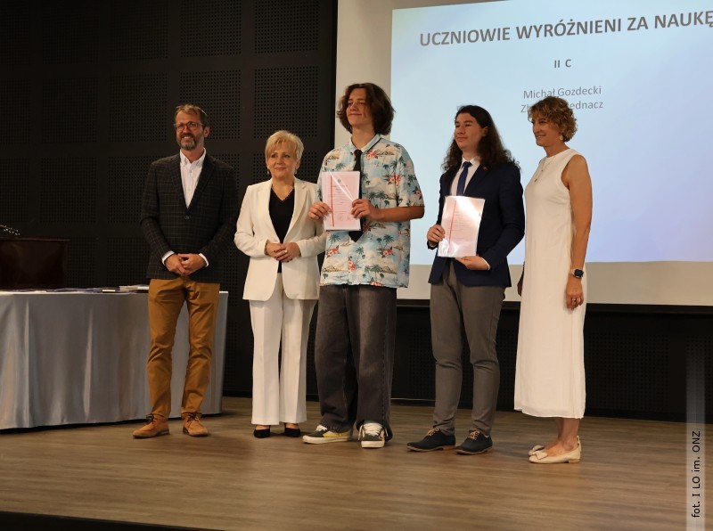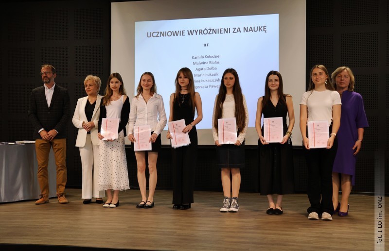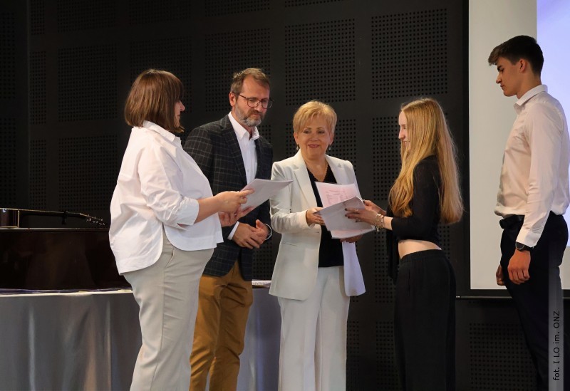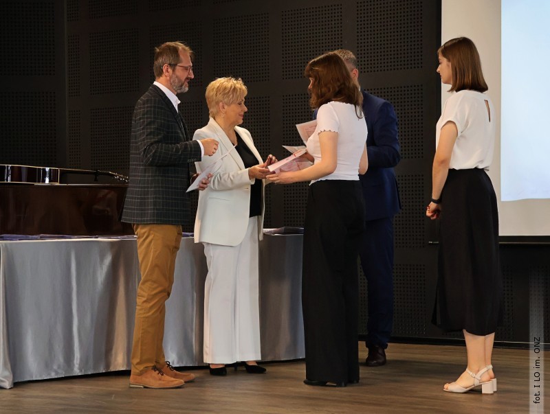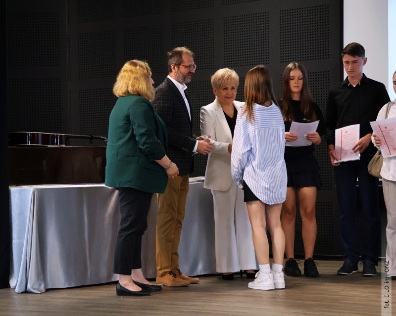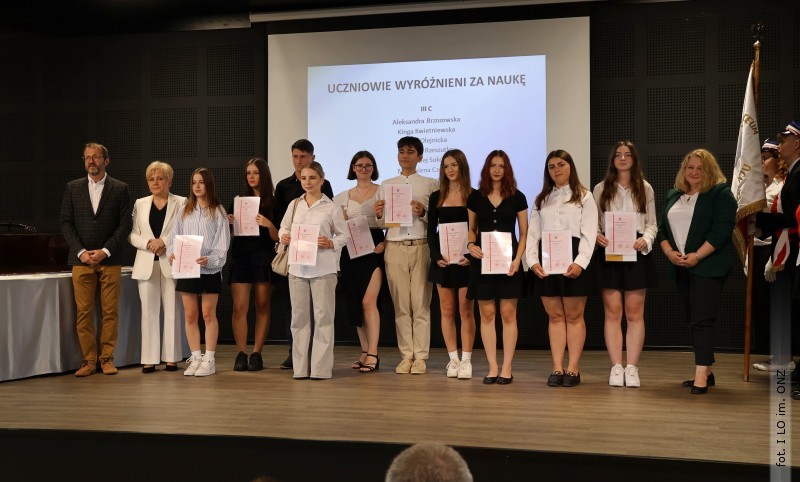 Następnie dyrektor Rycyk podsumowała mijający rok i z wychowawcami oraz zaproszonymi gośćmi wręczyła listy gratulacyjne i karty podarunkowe licealistom, którzy otrzymali świadectwa z czerwonym paskiem, laureatom oraz finalistom olimpiad przedmiotowych i konkursów, uczniom ze 100% frekwencją oraz szczególnie aktywnie działającym na rzecz społeczności szkolnej.