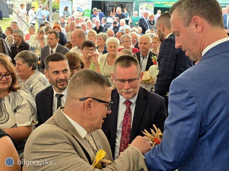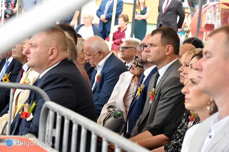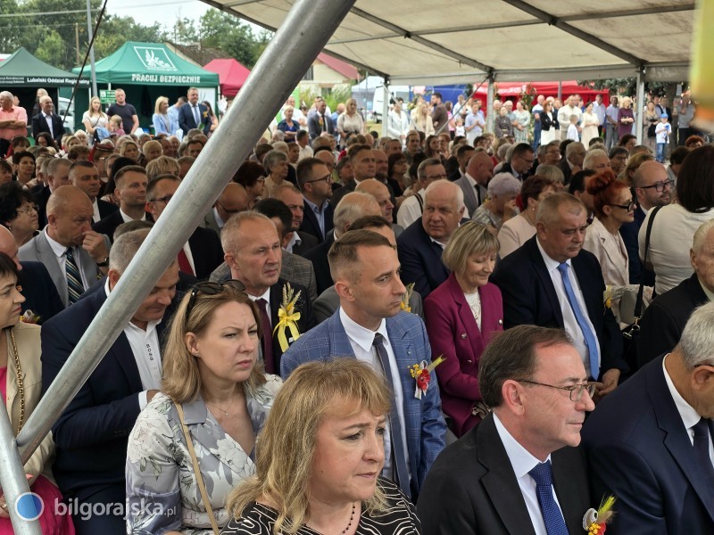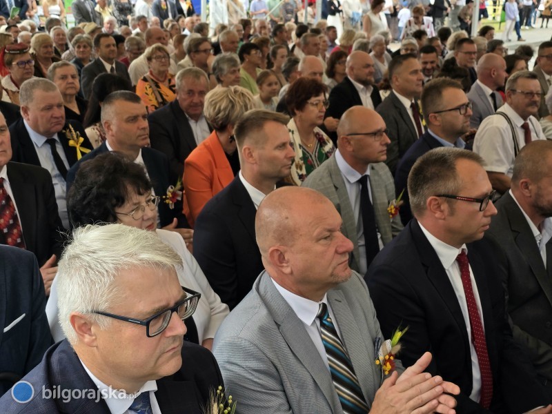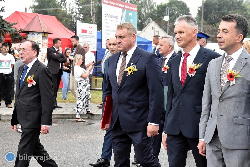 Następnie głos zabrał starosta powiatu. Andrzej Szarlip mówił, że dożynki to czas podsumowania całorocznej pracy i wyraz wdzięczności dla rolników za ich trud i poświęcenie. Zwracał uwagę na znaczenie ziemi, jej siłę i konieczność szacunku dla natury oraz dla tych, którzy ją uprawiają. Wójt Dyjak przypomniał za to, jak ważna jest rola rolników dla zapewnienia bezpieczeństwa żywnościowego i rozwoju naszej społeczności.