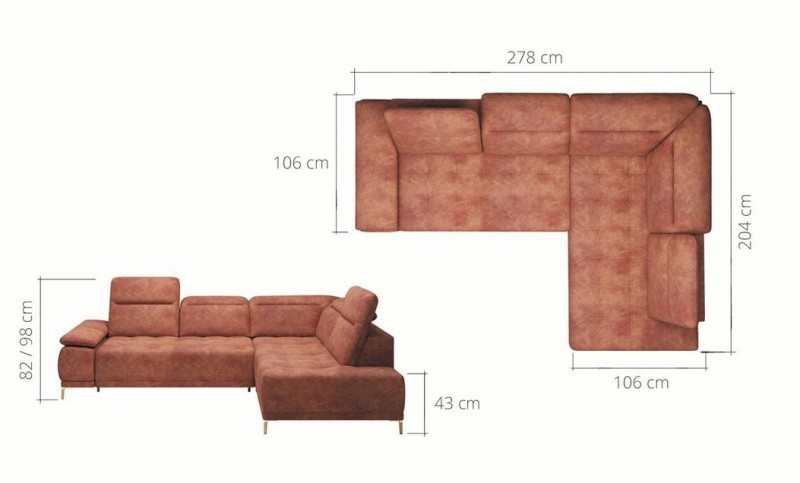 • Modułowa budowa - pozwala na zmianę układu narożnika w zależności od aranżacji wnętrza.