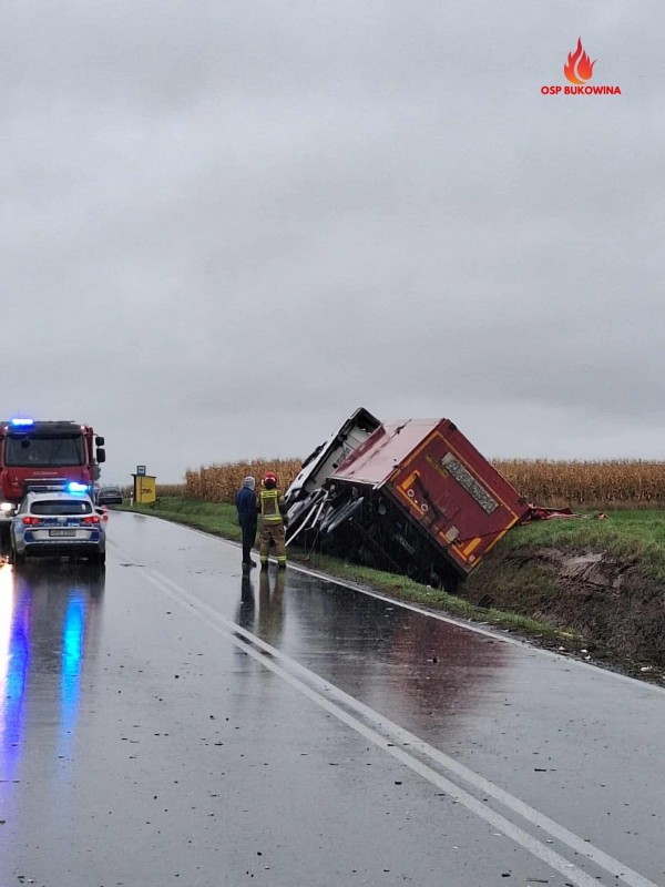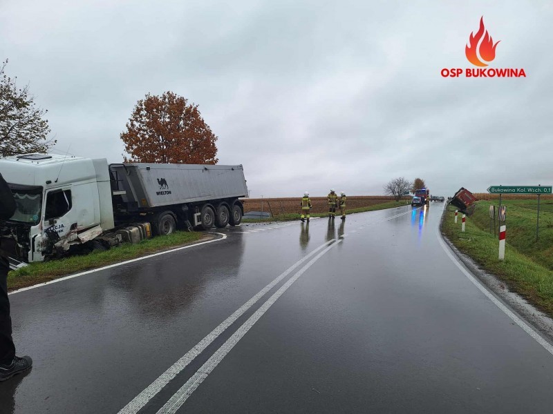 Z informacji przekazanych przez oficera dyżurnego Komendy Powiatowej Państwowej Straży Pożarnej w Biłgoraju wynika, że zgłoszenie o zderzeniu dwóch pojazdów ciężarowych na drodze wojewódzkiej nr 863, na odcinku Tarnogród-Bukowina, wpłynęło do służb w piątek, 24 października, o godzinie 11:19. Na miejsce zadysponowano patrol policji, zespół ratownictwa medycznego oraz pięć zastępów straży pożarnej.