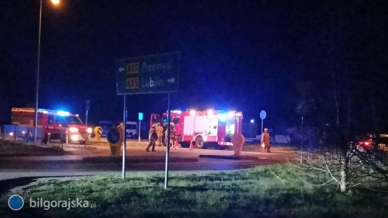 Na miejsce skierowano policję, pogotowie ratunkowe oraz trzy zastępy straży pożarnej - dwa JRG Biłgoraj i jeden OSP Gromada.