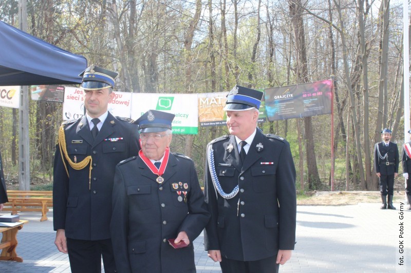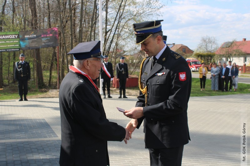 Po nabożeństwie uczestnicy przemaszerowali na plac przy remizie, gdzie odbyła się część oficjalna. Złożono meldunek, podniesiono flagę państwową i odegrano hymn. W trakcie uroczystości wręczono odznaczenia i wyróżnienia dla zasłużonych druhów.