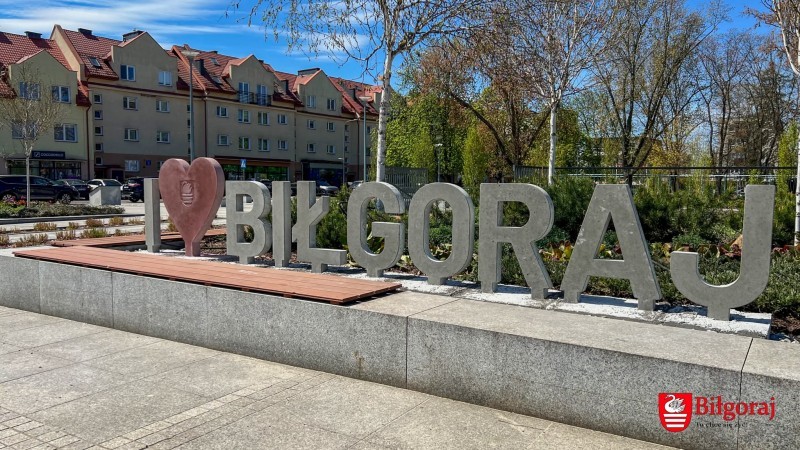 Na Placu Wolności, tuż przed budynkiem Urząd Miasta Biłgoraja, pojawił się nowy element przestrzeni miejskiej - napis "I ❤️ Biłgoraj".