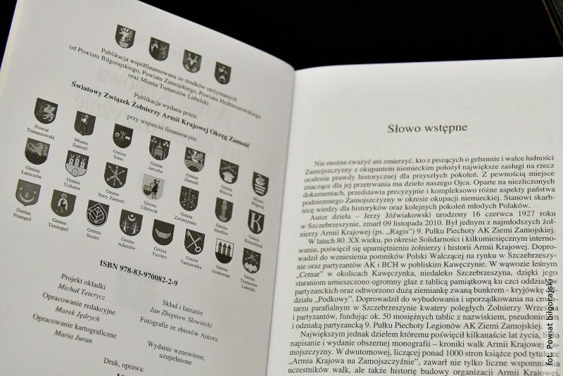 Wznowienie monografii zostało dofinansowane jako zadanie publiczne pn. "Druk publikacji "Armia Krajowa na Zamojszczyźnie" Jerzy Jóźwiakowski", współfinansowane ze środków powiatu biłgorajskiego.