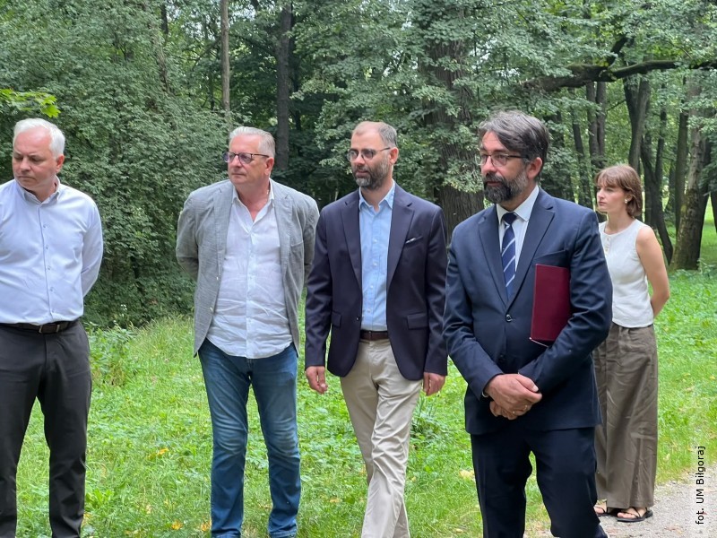 W ciągu najbliższych dni rozpoczną się tu prace budowlanego, które mają na celu przywrócenie dawnego blasku. W środowe przedpołudnie 3 września władze miasta przekazały teren wykonawcy zadania. Spotkanie i podpisanie stosownych dokumentów odbyło się w sali konferencyjnej Urzędu Miasta Biłgoraja. Następnie wszyscy przejechali na teren parku.