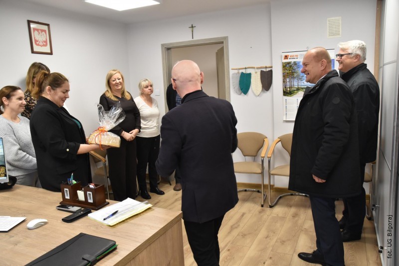 Z tej okazji wójt gminy Biłgoraj Dariusz Świerczyński odwiedził Gminny Ośrodek Pomocy Społecznej, by osobiście podziękować pracownikom za ich pracę, zaangażowanie i oddanie lokalnej społeczności.