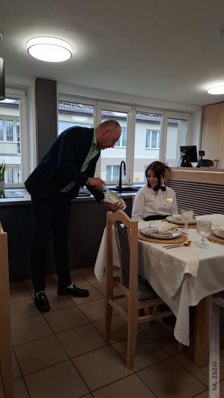 Szkolenie miało charakter praktyczny - każdy uczeń mógł samodzielnie przećwiczyć omawiane techniki, co znacząco wpływa na rozwój kompetencji zawodowych i przygotowanie do egzaminów oraz przyszłej pracy w branży gastronomicznej i eventowej. Realizacja tego typu przedsięwzięć wpisuje się w aktualne kierunki polityki oświatowej państwa, w szczególności w zakresie wzmacniania kształcenia zawodowego, rozwijania umiejętności praktycznych oraz współpracy szkół z przedstawicielami rynku pracy. Dzięki takim inicjatywom uczniowie zdobywają realne doświadczenie, poznają standardy obowiązujące w branży oraz rozwijają kompetencje kluczowe, takie jak odpowiedzialność, kultura pracy i dbałość o jakość świadczonych usług.