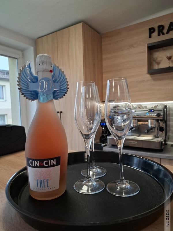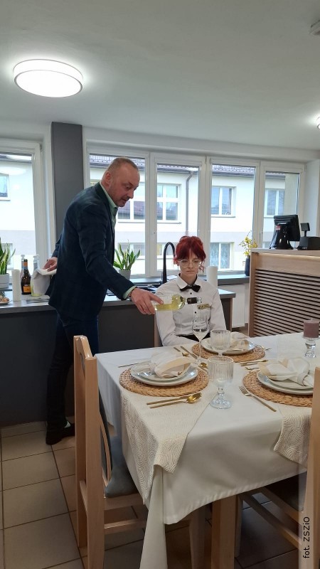 W czwartek 9 kwietnia w Zespole Szkół Zawodowych i Ogólnokształcących odbyło się wyjątkowe szkolenie branżowe dla uczniów klas II i III technikum usług kelnerskich. Tematem spotkania była sztuka serwowania wina, ze szczególnym naciskiem na elegancję, bezpieczeństwo oraz kulturę pracy w zawodzie. Podczas zajęć młodzież zdobywała umiejętności w oparciu o produkt bezalkoholowy - Cin&Cin Alcohol Free, co pozwoliło w pełni skupić się na technice i standardach obsługi, bez elementu alkoholu.