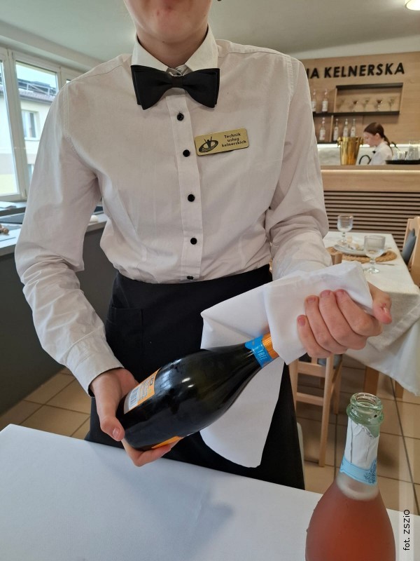 Jest to szczególnie istotne w kontekście odpowiedzialnego kształcenia młodzieży oraz promowania właściwych postaw zawodowych. Uczniowie uczyli się m.in. prawidłowego i bezpiecznego otwierania wina musującego (na bazie produktu bezalkoholowego), zasad profesjonalnego i eleganckiego serwowania wina musującego bezalkoholowego, techniki otwierania wina spokojnego, dekantacji czerwonego wina i ich serwowania klientom, z uwzględnieniem zasad estetyki i poprawności wykonania.