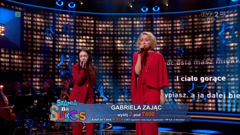 Trwa Wielki Finał Szansy na Sukces! Już teraz na antenie TVP2 Gabriela Zając z Tarnogrodu walczy o zwycięstwo i udział w Krajowym Festiwalu Piosenki Polskiej w Opolu.